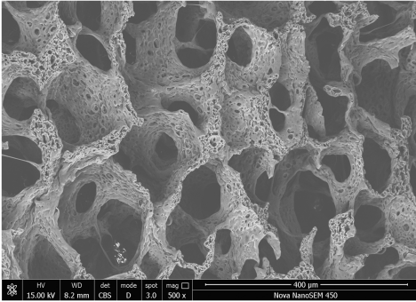PVA süngeri saf beyaz, temiz, homojen, rahat ve oldukça esnektir; genişleyen hemostatik sünger, sıvı emici sünger PVA süngeri ve negatif basınçlı yara tedavisi için yaygın olarak kullanılabilir. Üretim süreci temiz gaz köpürtme işlemi ve faz ayırma teknolojisi ile uygulandığından, PVA süngeri SEM (taramalı elektron mikroskobu) ile mikroskopta yuvarlak ve gözenekli kabarcık şekli gösterir ve gözenek duvarı belirgin "kabarcık" özellikleri gösterir; bu da nişasta dolgu işlemiyle üretilen süngerden esasen farklıdır. Ürünün gözenek boyutu, yoğunluğu, esnekliği ve çekme mukavemeti gibi performansları iyi kontrol edilebilir.